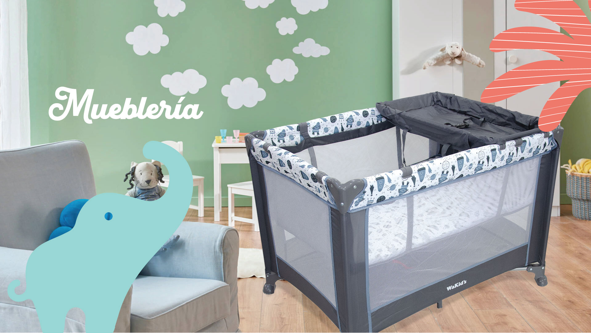 Cunas, corrales, andaderas, carritos, sillas de comer.